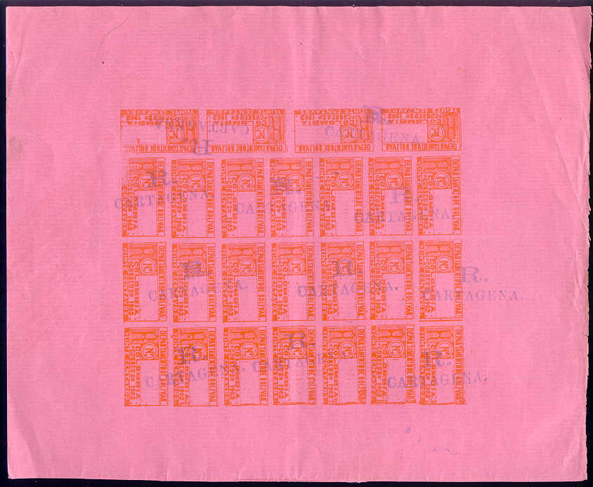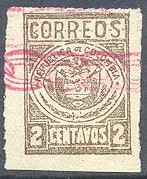 1 c brown on yellow 2 c black on yellow 5 c red on yellow 5 c brown on green 5 c red 10 c blue on yellow 10 c red on red
